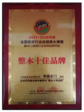 公司成立以來,連續(xù)七年獲得中國(guó)木門30強(qiáng)企業(yè)稱號(hào),并具有26項(xiàng)國(guó)家技術(shù)專利,同時(shí)獲得中國(guó)木門30家市場(chǎng)放心品牌、中國(guó)木門CTC質(zhì)量認(rèn)證、中國(guó)木門CTC健康認(rèn)證、中國(guó)網(wǎng)絡(luò)最值得信賴木門品牌、中國(guó)優(yōu)質(zhì)名牌產(chǎn)品、中國(guó)木門協(xié)會(huì)副會(huì)長(zhǎng)單位、CCTV上榜品牌等榮譽(yù)。
